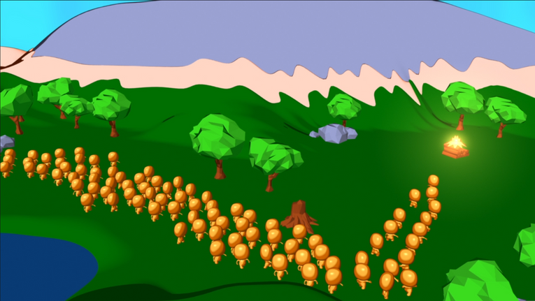 This piece was a collaboration with Snehal Poojary and Iury Painelli. Snehal applied interactive polgon reduction, based upon camera distance to the Meeple characters. The challenge was to preserve the visual geometry and overall shape, despite rendering less polygons. Iury provided procedural terrain generation from a series of curves, including the ability to define "no-go zones" that the Meeples were not allowed to pass through.